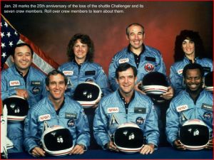 Twenty-five years ago, on January 28, 1986, the world lost seven of its best and brightest citizens when the space shuttle Challenger was destroyed as it launched into space. Dick Scobee, Michael Smith, Ellison Onizuka, Judith Resnik, Ronald McNair, Christa McAuliffe, and Gregory Jarvis were lost when their spacecraft exploded 73 seconds after liftoff on that brisk January morning.